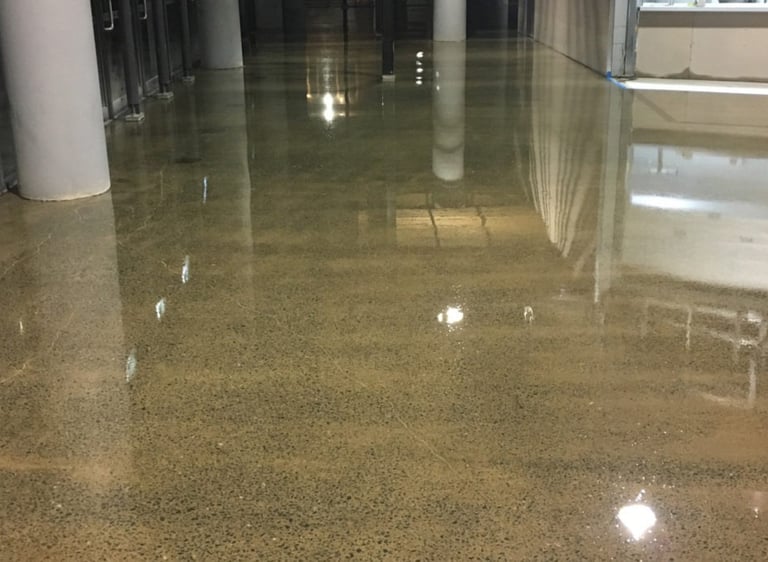 Grinding removes damage, honing smooths the surface, sealing protects it, and polishing finishes it with a refined look. Together, they create a strong, attractive, long-lasting concrete surface.